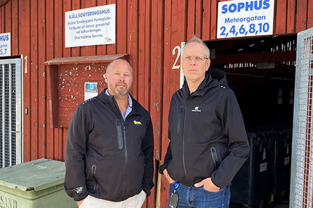 Fredrik Gedin, miljö- och avfallsstrateg på Tunabyggen, och Christian Olhans, affärsområdeschef återvinning på Borlänge Energi.