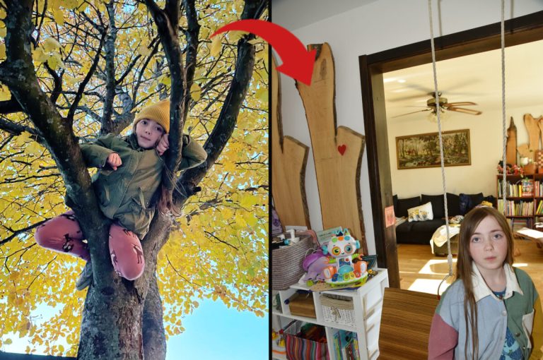 Nioåriga Alice Nordgren klättrade i ett träd för att rädda ett träd i sin trädgård. Om den föll ändå ville hon ta hand om den. En del av det trädet hänger nu på väggen i Alices hus.