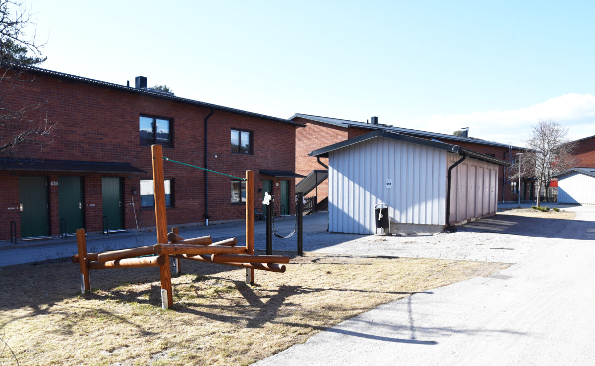 Axeln ligger bredvid en papperskorg och är för närvarande täckt av grus. Ovikshem har också installerat fler klättringsskydd i sin trädgård.