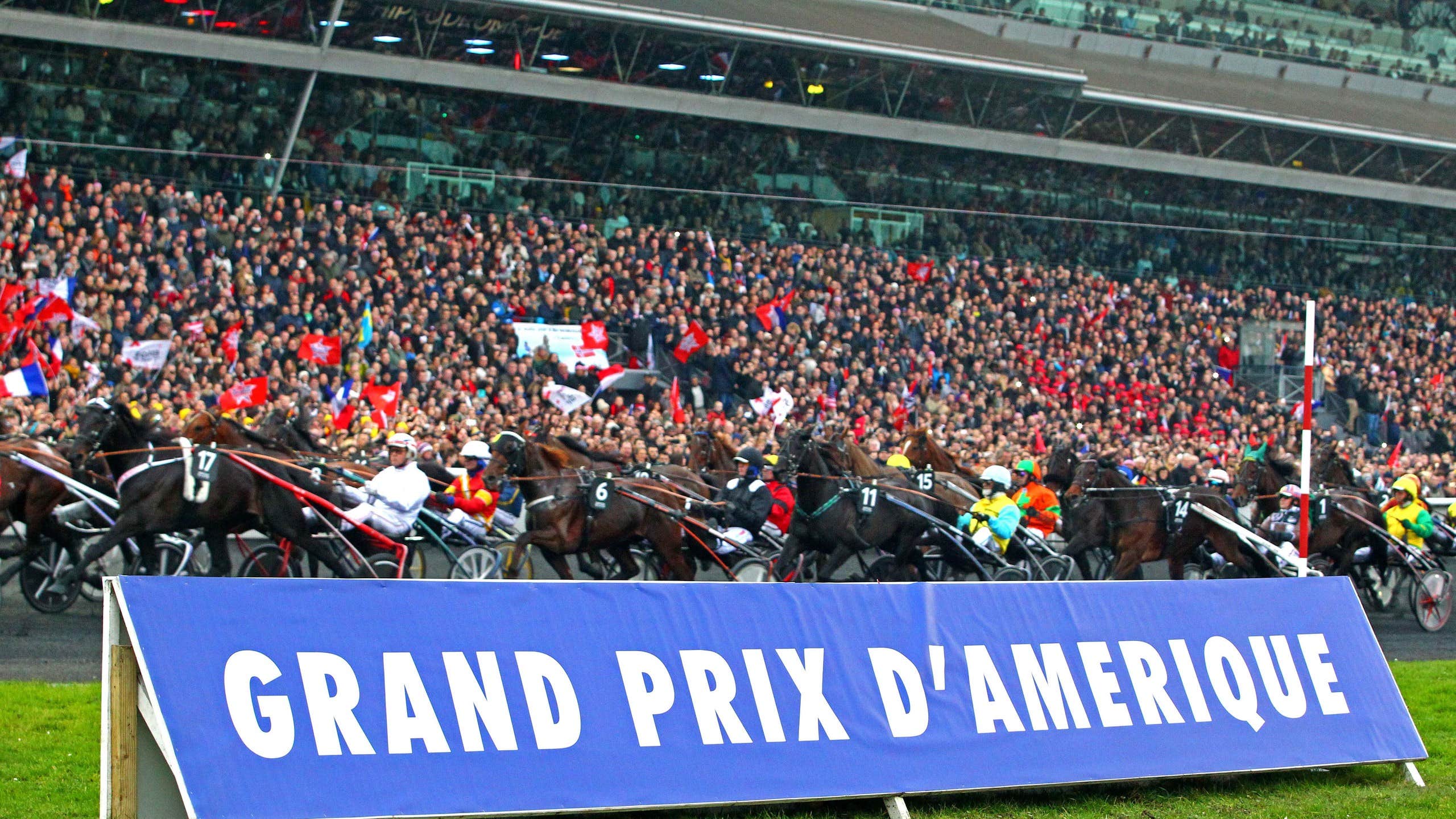 American Prix består av 18 hästar, och det franska bolt-entry-systemet skiljer sig från det svenska. Det finns ingen startbana för lagen, istället samlas de i en inhägnad kopplad till banan, går en kvarts varv och ger sig sedan av.