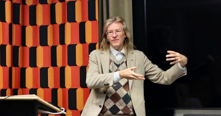 Futuristen Anders Sandberg föreläser här om kryoteknikens möjligheter och utmaningar, och är mycket intresserad av de existentiella frågor den väcker. Han vill vakna upp i framtiden och se om hans teori stämmer. Foto: Tobias Pettersson/HBL