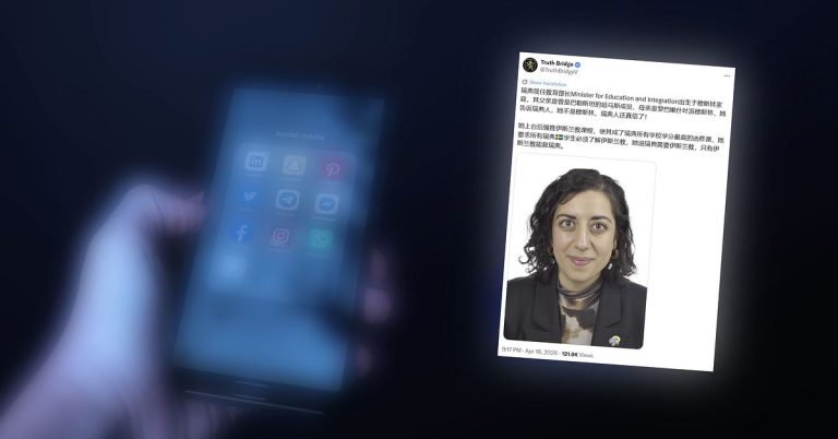 En annan tweet riktar en rad falska anklagelser mot Simona Mohamsson om att hon ”tvingat islam på svenska barn” i sin roll som utbildningsminister. Även om det här inlägget gjordes på kinesiska, plockades det upp och spreds vidare på många andra språk och nådde hundratusentals användare.