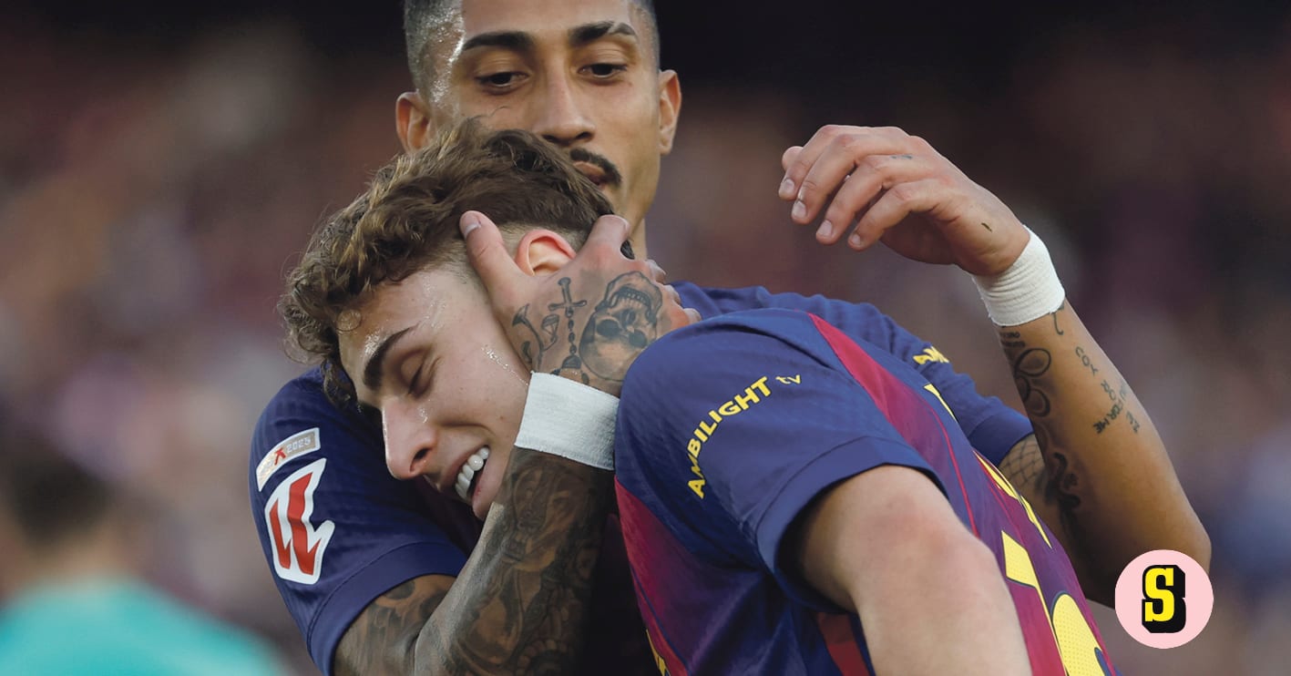 Fermin López kramas efter 3-0-målet.