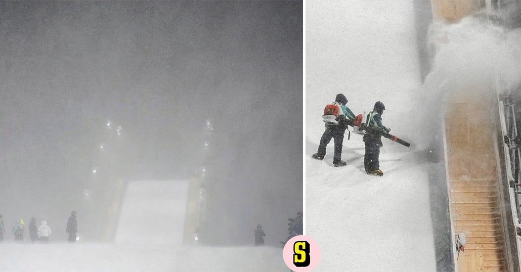 En kraftig snöstorm tvingade arrangörerna att skjuta upp OS-finalen med nästan en och en halv timme.