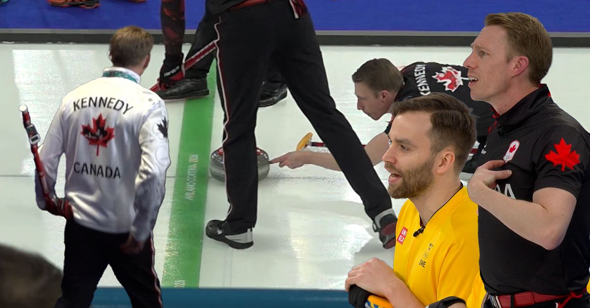 I Cortina är laget inte upp till den sportsliga nivån. Samtidigt har Oscar Eriksson, efter fredagens uppmärksammade match mot Kanada, väckt uppståndelse efter att ha påpekat att kanadensiska spelare borde ha rört graniten ovanpå stenarna utan tillstånd.