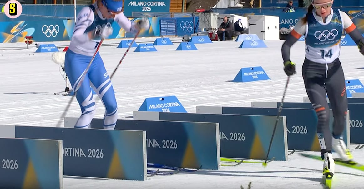 När ryska Darja Neplyaeva, som tävlade under neutral flagg, försökte byta skidor gick allt fel. Hon gled in i fel fåll och upp på tyska Katharina Henning Dotzlers skidor.