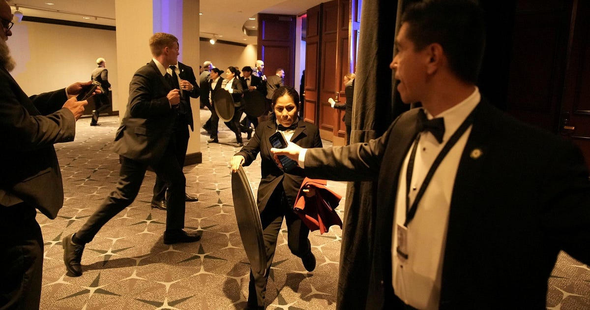● Flera skott avlossades inne på hotellet, som ockuperades av hundratals gäster, inklusive Donald Trump, första damen Melania Trump, vicepresident J.D. Vance och många journalister. Människor kryper under bord under kaotiska scener. Skjutningen inträffade inte i lokalen där middagsbjudningen ägde rum.