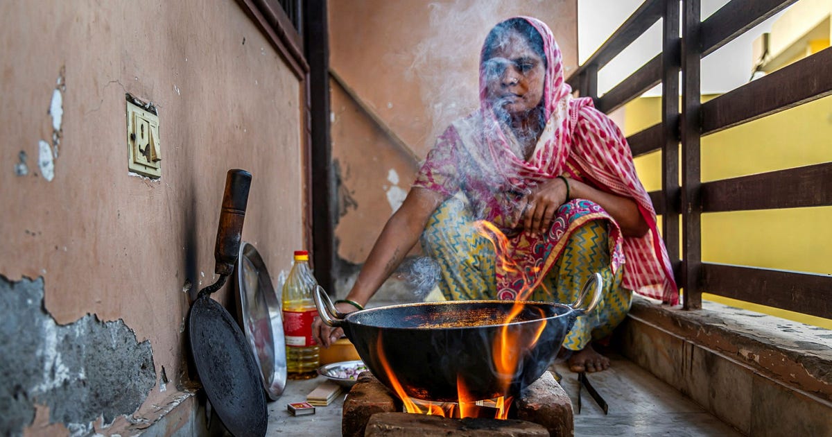 Pinki Kapoor förbereder middag på översta våningen i en fyravåningsbyggnad utan hiss i södra Delhi. Hon skivar skickligt potatis, grön chili, rödlök och tomater. Vanligtvis lagade hon en maträtt som heter aloo sabzi på en gasspis. Men sedan Irankriget började har gasol inte funnits tillgänglig.