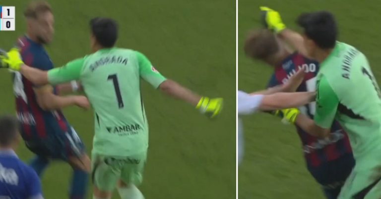 Efter bråket fick ytterligare två spelare röda kort, inklusive Huesca-målvakten Dani Jimenez för en träff på Andrada.