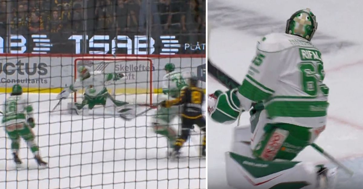 När Mikkel Aagaard gjorde 3-0 bytte Rögle ut målvakten Arvid Holm mot Kristofer Rifaluk, men det hjälpte inte mycket.