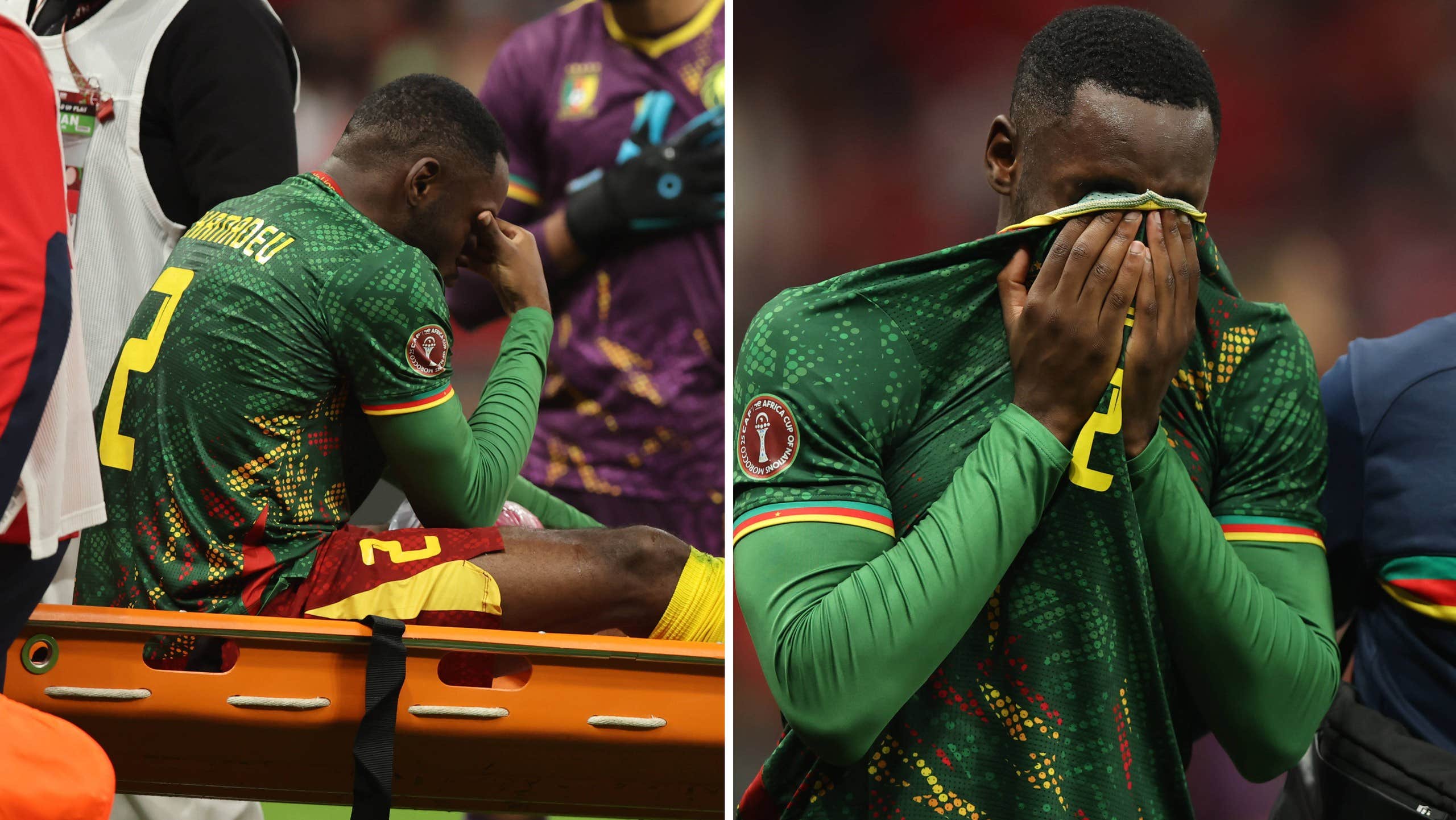 Några mardrömslika minuter kan förstöra natten för dina gäster. Drygt 20 minuter in i matchen landade den marockanska ytterbacken och Manchester United-stjärnan Nousser Mazraoui hårt i knäet på kamerunens högerback Junior Chamadou.