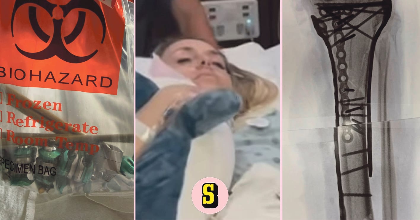 Hon är fortfarande på sjukhus efter sina skador. Och fortfarande är inte alla detaljer om omfattningen av sammansatta tibiafrakturer kända.