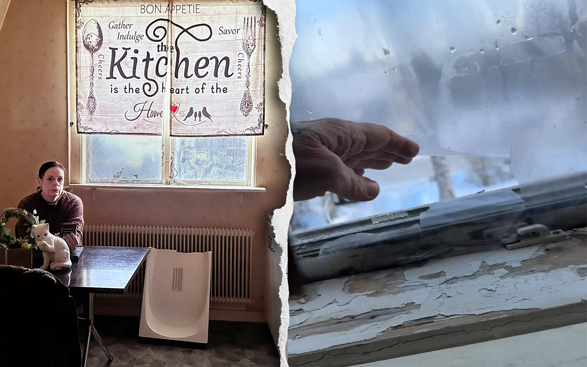 – Situationen kommer bara att bli värre. Jag hade inte haft mitt köksfönster på över ett och ett halvt år och det var en tunn plastfilm på det som blåste av. Det enda jag har nu att skydda är frigolitskivan jag lagt på blomkrukan. Utan den finns det ett hål, säger hon och tillägger: