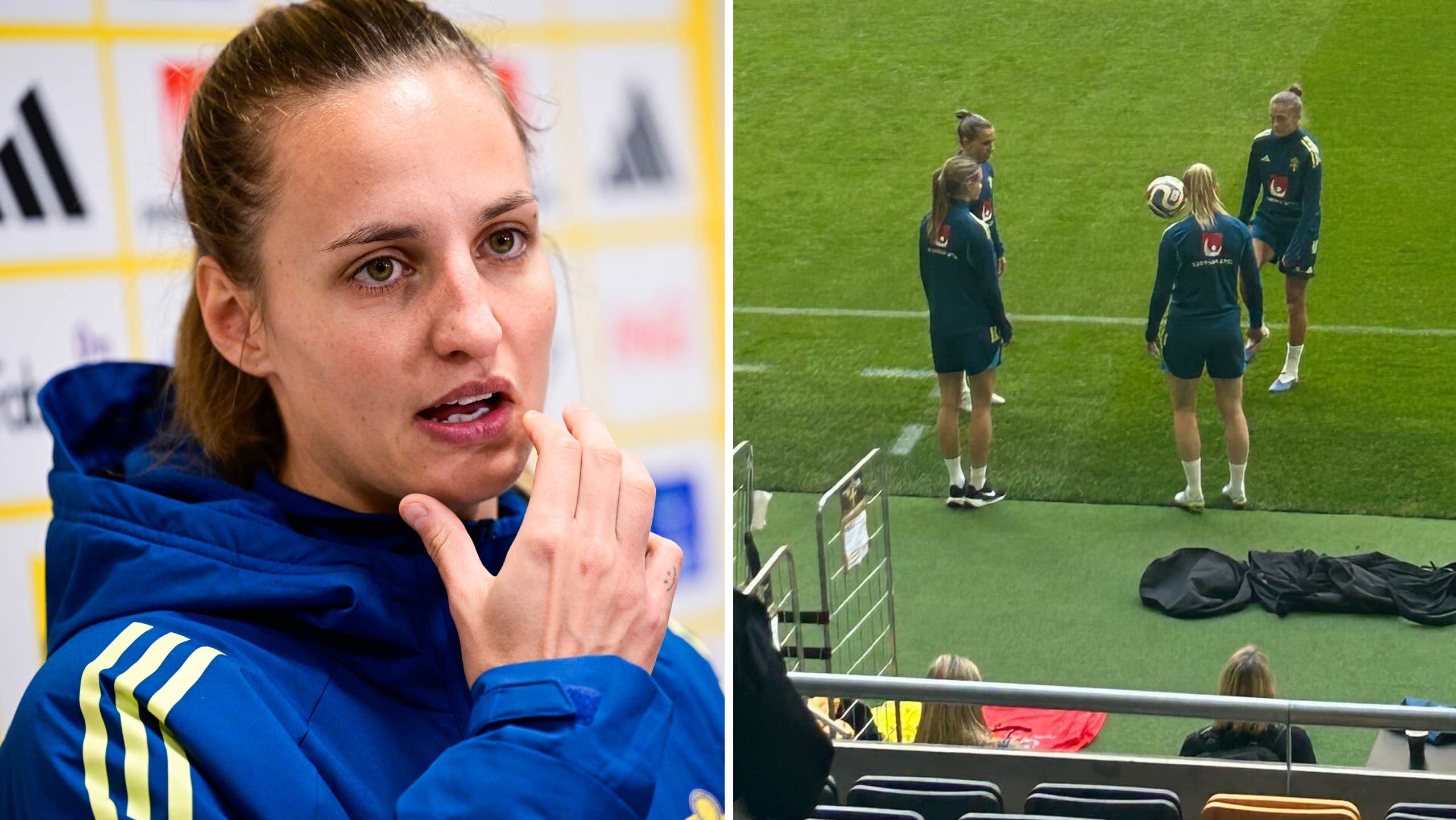 Hon dyker just nu upp på landslagets träning dagen innan matchen mot Serbien.