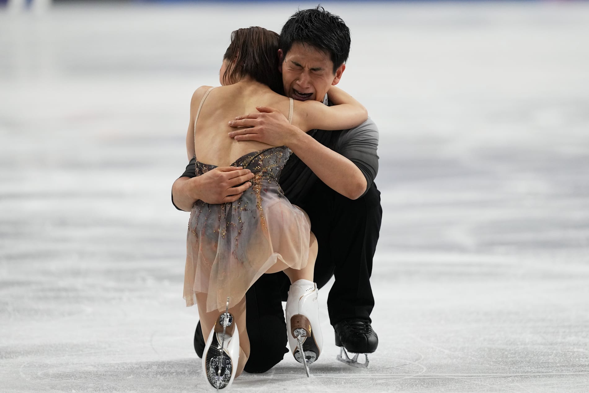 Friskridsko är som den korta programfinalen från förra gången, men poäng räknas ihop. Parets totala poäng var 231,24, ett historiskt resultat för Japans OS-guld i parskridskoåkning.