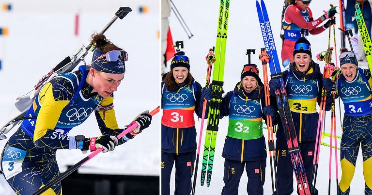Det svenska laget, bestående av Lynn Gestblom, Anna Magnusson, Elvira Oberg och Hanna Oberg, tog Sveriges tredje medalj i skidskytte vid vinter-OS.