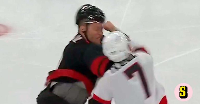 Lagkaptenerna Jordan Staal (Carolina) och Brady Tkachuk (Ottawa) bestämde sig för att hänga på handskarna och slåss. Tkachuk sa några ord till Stahl, som var ansvarig för målningen.